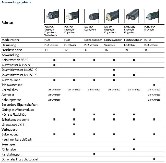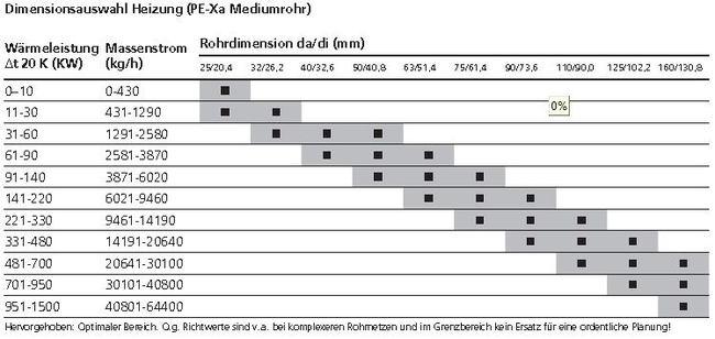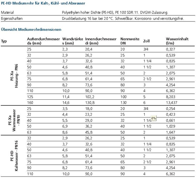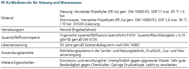 Die Mediumrohre für Heizung und Warmwasser werden aus vernetztem Polyethylen (PE-Xa), Mediumrohre für den Transport von Kalt-, Kühl- und Abwasser aus Polyethylen hoher Dichte (PE-HD) hergestellt.